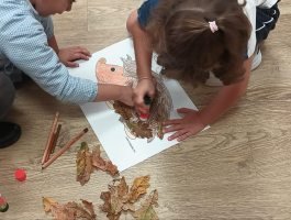 Despois seguimos co traballo no cole facendo uns ourizos con follas e landras.