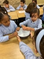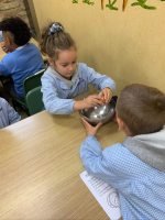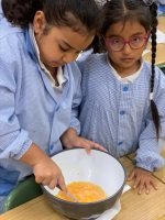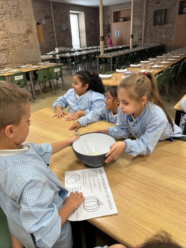 Hoxe, o alumnado de 2º EP, elaboramos unhas deliciosas galletas de cabaza, perfectas para esta época do ano. Primeiro traballamos a receita na aula, lendo e comprendendo os pasos, os ingredientes e as medidas.