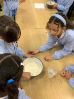 Despois puxémonos mans á obra: fixemos dúas versións, unhas con ovo e outras sen ovo, para que todos puidesen probalas.