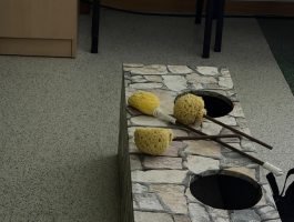 Os nosos alumnos xogaron a unha versión moi latina do “Uno” aprendendo expresións latinas, déronno todo aprendendo a bailar o sirtaki (menos mal que ía o noso profe de E.F. para animarnos... Grazas, Viti!) e até crearon os seus perfumes naturais con prantas aromáticas e mesmo probaron que era isto das “latrinas” (aseos sen portas nen tabiques de separación, sen papel hixiénico. Toda unha experiencia!