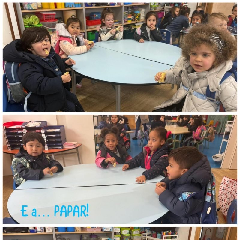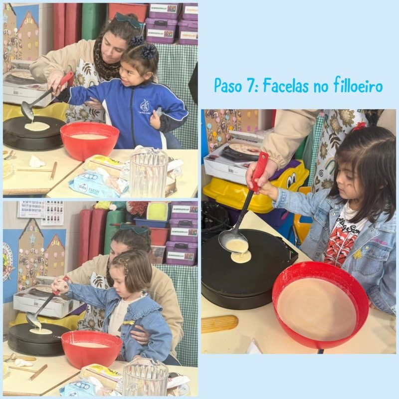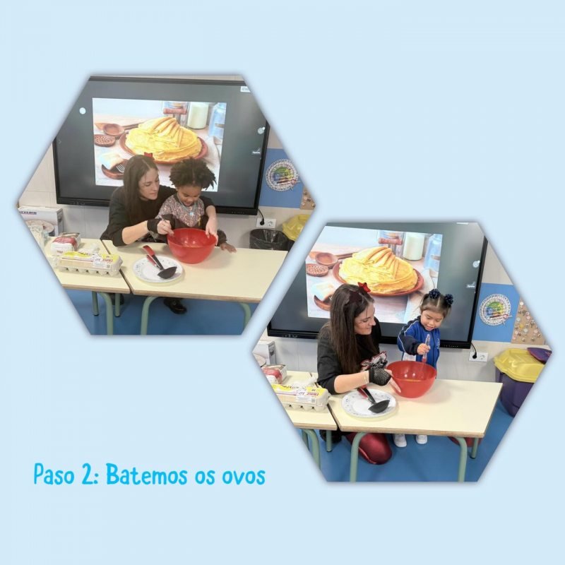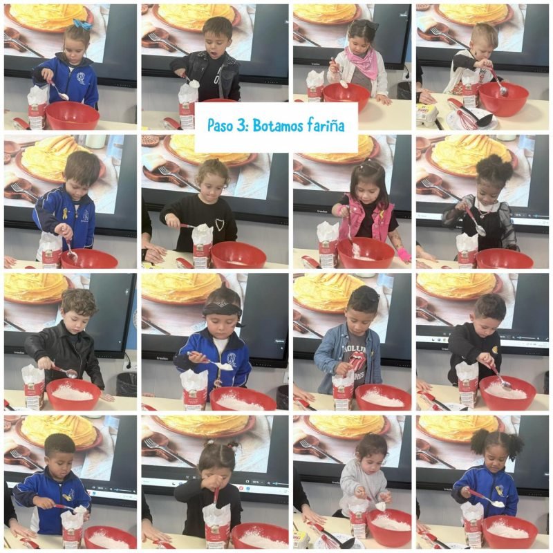 Esta tarde os nenos e nenas de 3 anos acercámonos un pouquiño máis ó Entroido a través da gastronomía típica desta época. FIXEMOS FILLOAS!