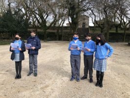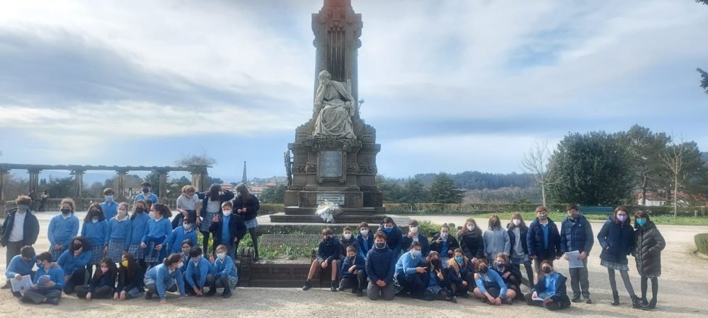 Tamén no día no que se celebra o aniversario do nacemento de Rosalía de Castro, os alumnos e alumnas de sexto de primaria fixemos unha pequena homenaxe á célebre escritora galega. Aproveitando o bo tempo fomos dar un paseo ata a Alameda visitando a sua escultura e recitamos alí un poema despois de coñecer un pouco máis sobre a sua vida.