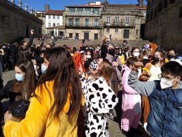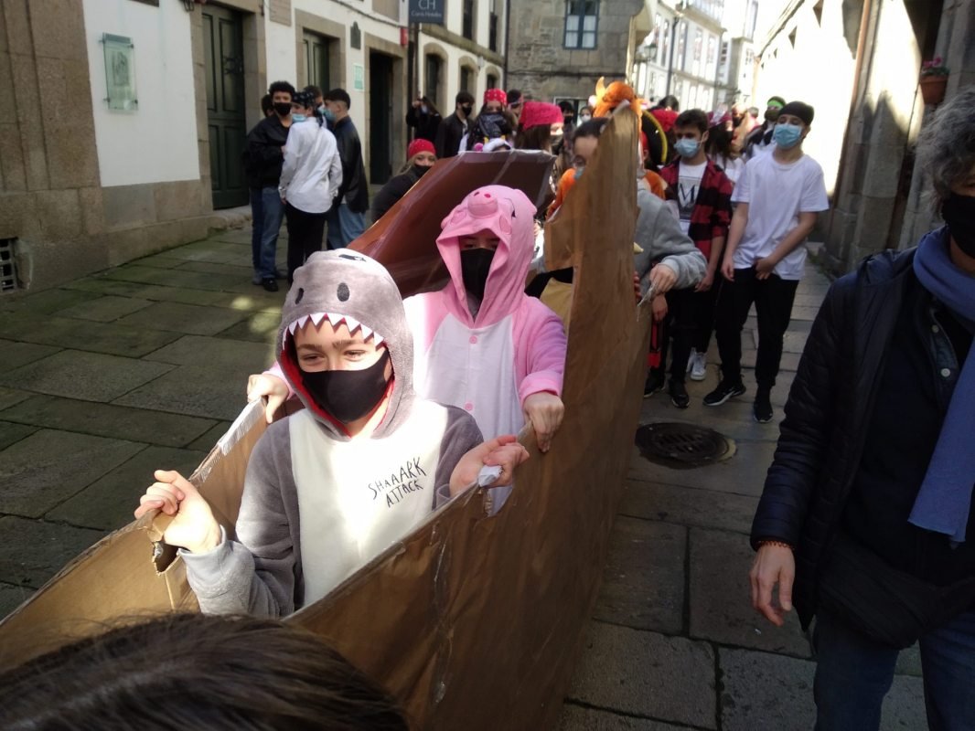 Ademais dun concurso de cpmparsas , celebramos a nosa ledicia por Compostela, compartido a nosa troula coa veciñanza , en concrero a da zona vella,. Acabamos por "tomar" a praza da Quintana onde concurriron todas as comparasas.