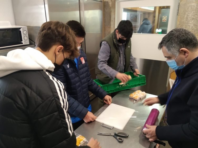Cada venres o noso alumnado e profesorado voluntario participa e colabora coa Cociña Económica de Santiago na preparación de bolsas de alimentos. Educar para a solidariedade e para a xustiza social, un obxectivo da escola do século XXI.