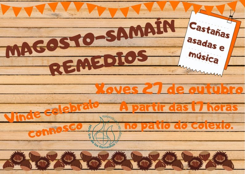 O vindeiro xoves 27 de outubro, ven a celebrar connosco o Samaín e o Magosto no patio do colexio, ás 17:00