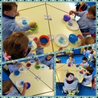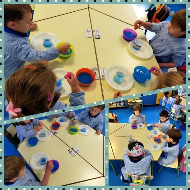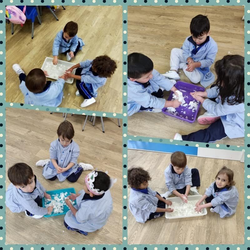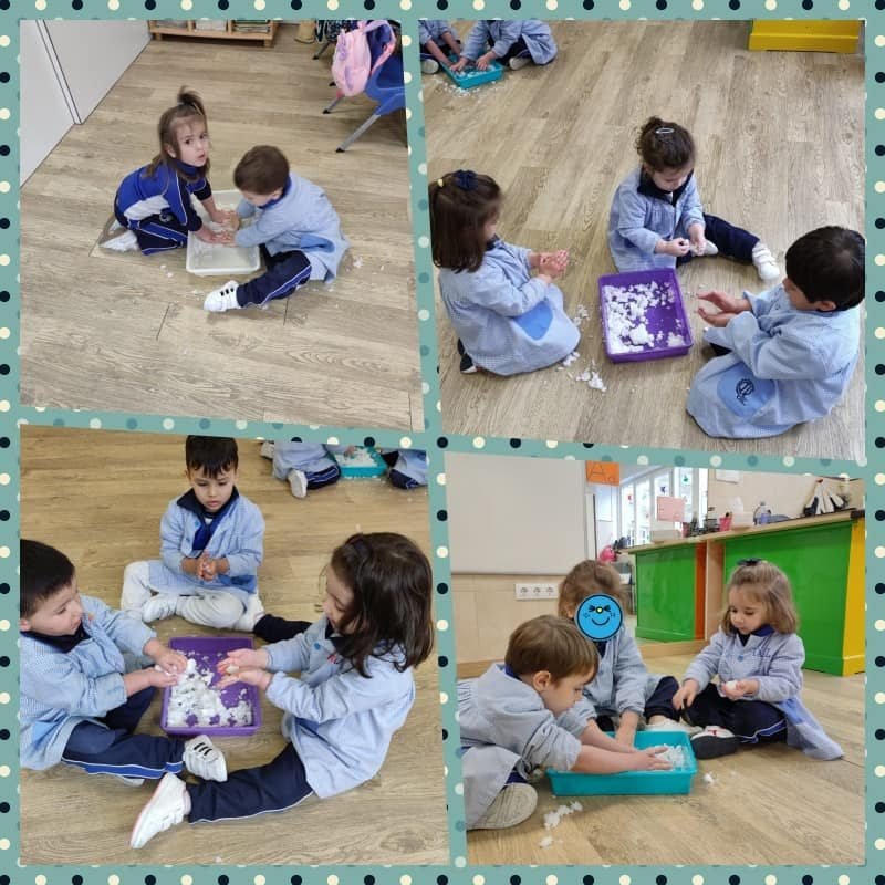 Experimentamos coa textura, coa temperatura e tamén realizamos trasvases con temática de inverno.