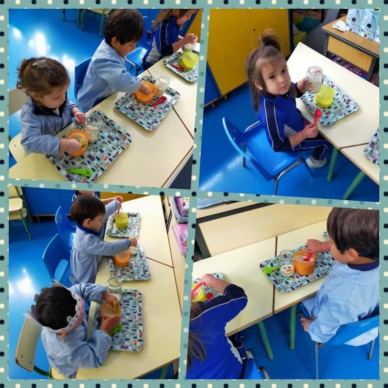 Xa que, a pesares das baixas temperaturas que nos acompañan estes días, seguimos sen ver a neve, decidimos facer neve artificial na clase!