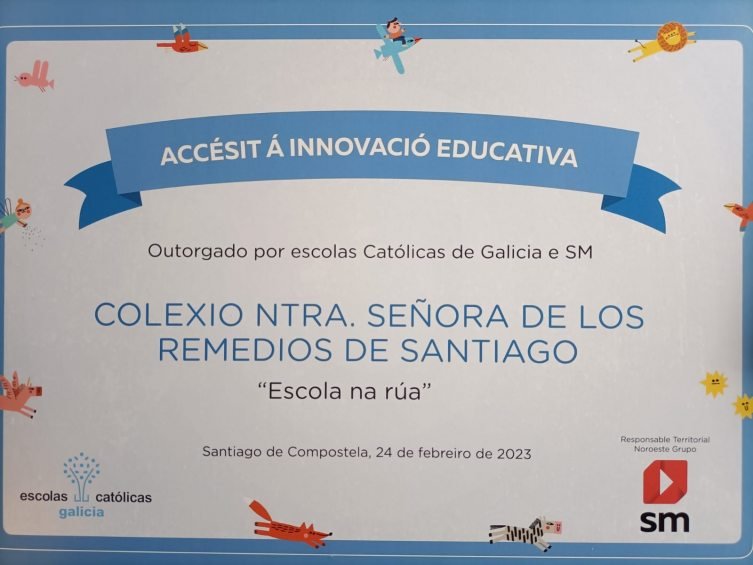 Esta mañá Escolas Católicas xunto coa editorial SM outorgaron ao noso colexio un accésit á innovación educativa co proxecto que se botou a andar este curso, Escola na rúa.