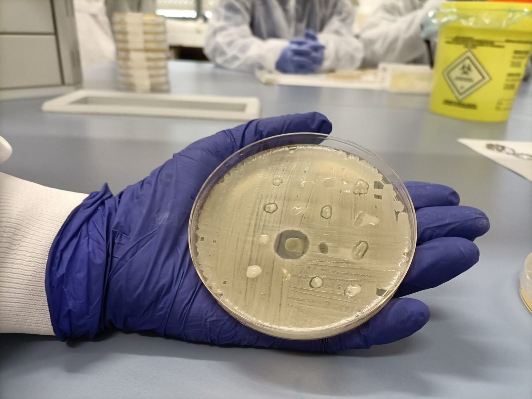 Fixeron recolleita duns espectaculares halos de inhibición que poñen de manifesto que nas súas mostras de terra hai microorganismos con potencial actividade bactericida. Podédelos ver nas instantáneas e a saber se serán os descubridores dunha REMEDIOSMICINA!!!