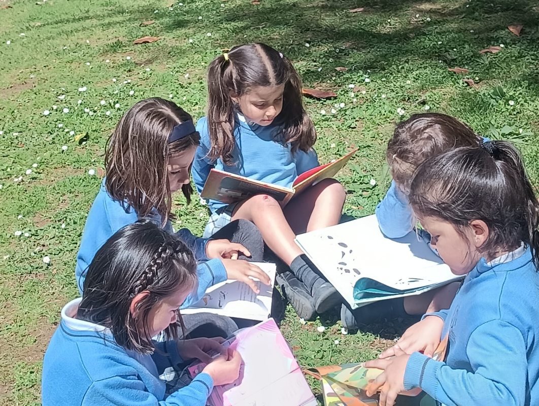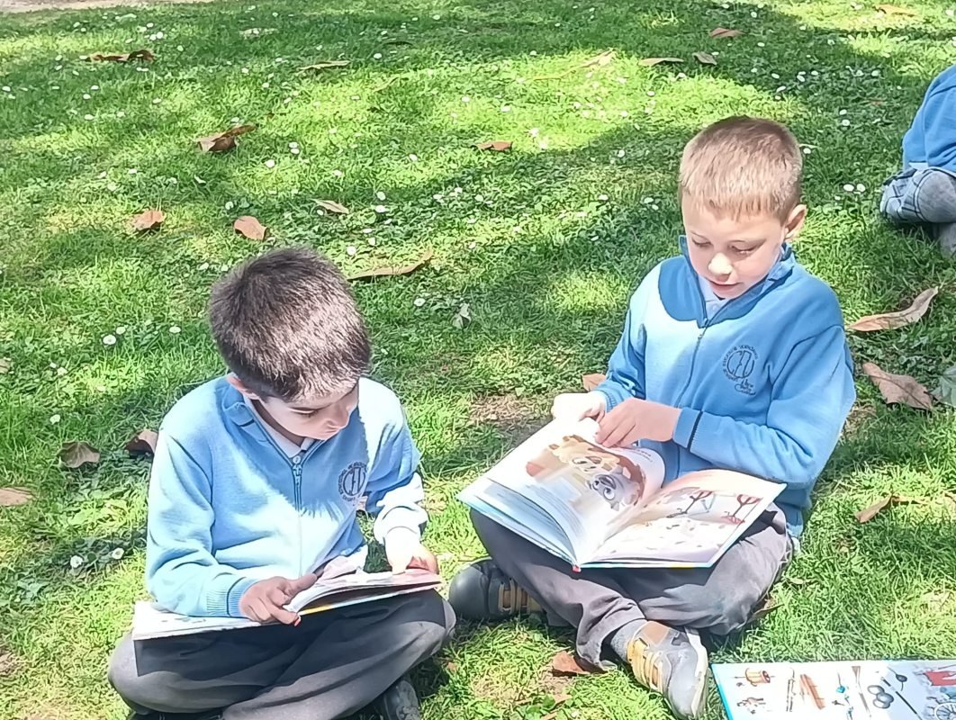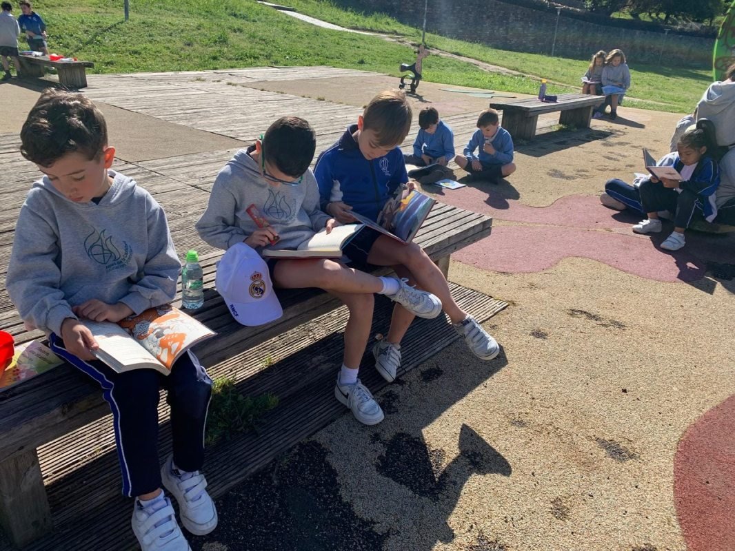 Os nenos de 1°e 2° de EP, como primeiros lectores, celebramos este día lendo fóra das aulas. Calquera sitio é un bo lugar para ler.