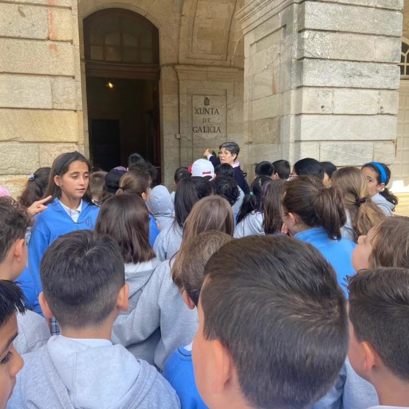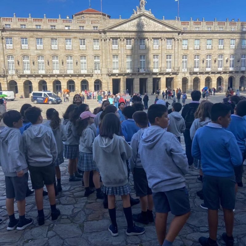 Para completar os contidos do tema de Ciencias Sociais que estamos traballando botámonos á rúa. Achegámonos ao Pazo de Raxoi, onde está a Casa do Concello de Santiago e a sede da Presidencia da Xunta de Galicia.