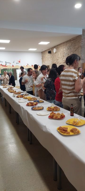 Entre bicos e apertas, con empanada e tortilla dabamos a benvida á xubilación de Celia.