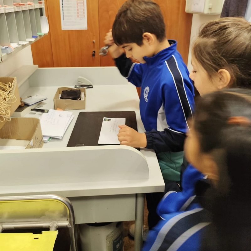 En Correos ademais de visitar as instalacións, puidemos poñer o noso selo para enviar a carta ás nosas casas.