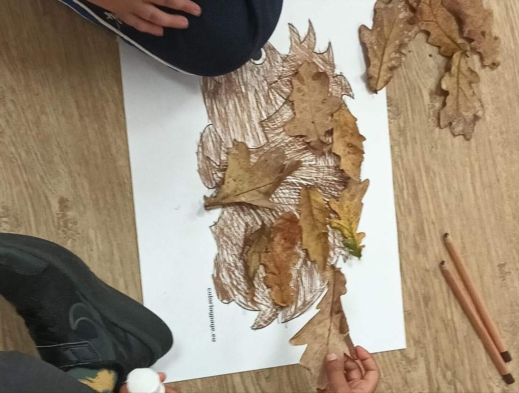 Despois seguimos co traballo no cole facendo uns ourizos con follas e landras.