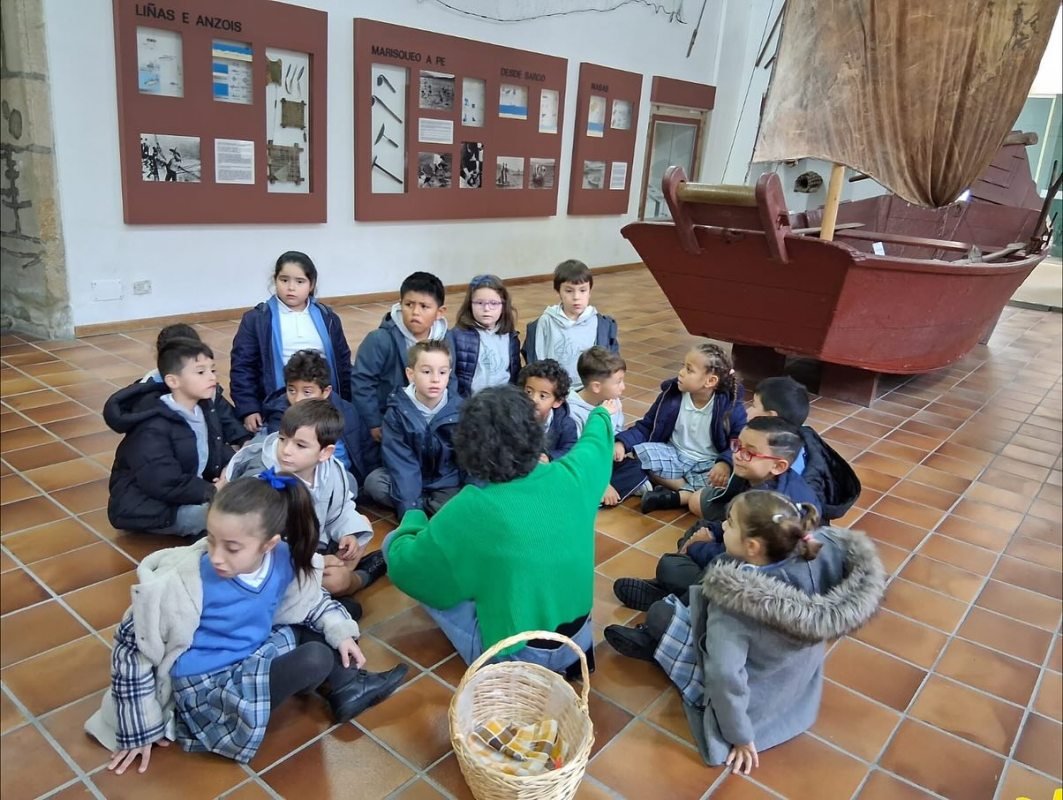 Fixemos de dectetives buscando obxectos perdidos polo museo (agullas de coser redes, zocas, pandeiretas...) todo con música.