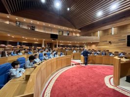 Hoxe o alumnado de 4º de Primaria visitou o Parlamento de Galicia, participando nunha actividade moi dinámica e enriquecedora. Durante a visita convertéronse en deputados e deputadas por un día, o que lles permitiu poñer en práctica contidos traballados na aula sobre a democracia, o funcionamento das institucións e a importancia de ser conscientes das decisións que se toman. Algúns deles incluso se animaron a propoñer algunha lei, facendo da experiencia unha vivencia moi motivadora e significativa.