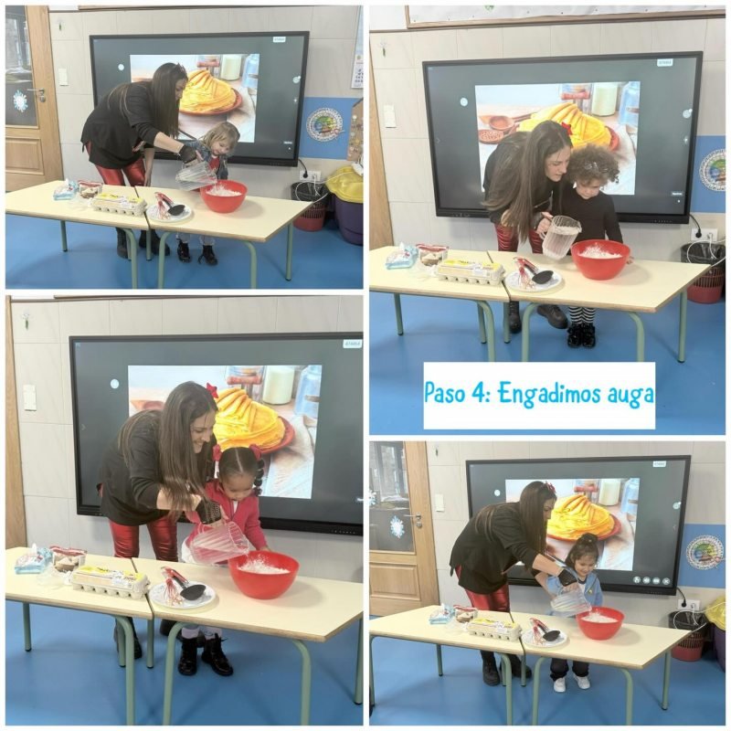 Esta tarde os nenos e nenas de 3 anos acercámonos un pouquiño máis ó Entroido a través da gastronomía típica desta época. FIXEMOS FILLOAS!