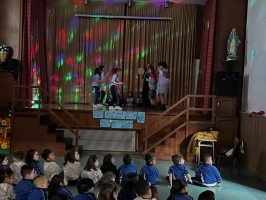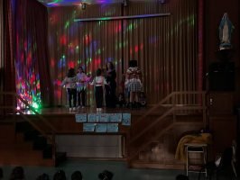 Encantounos ver os nosos compañeiros acompañados da súa profe María, no escenario, como auténticos artistas.