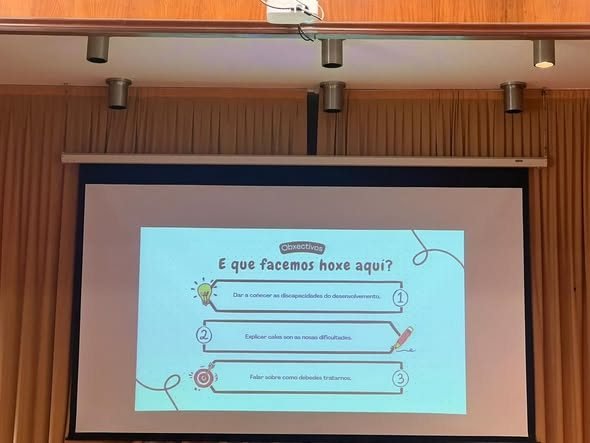 Ayer, en el cole, tuvimos una charla muy especial de Fademga, donde aprendimos más sobre la realidad de las personas con discapacidad intelectual. A través de un testimonio en primera persona y de varias dinámicas, pudimos ponernos en su lugar por un momento y entender mejor algunos de los retos que afrontan en su día a día.