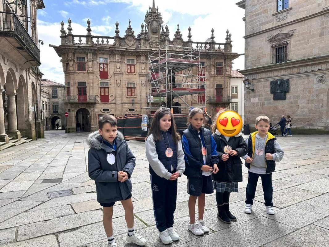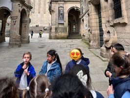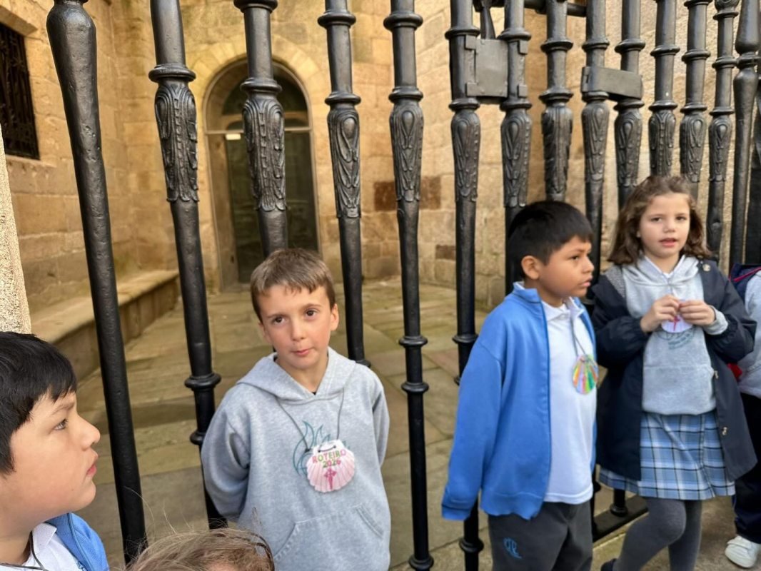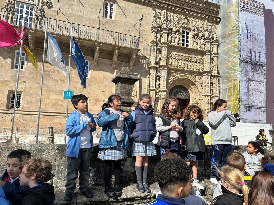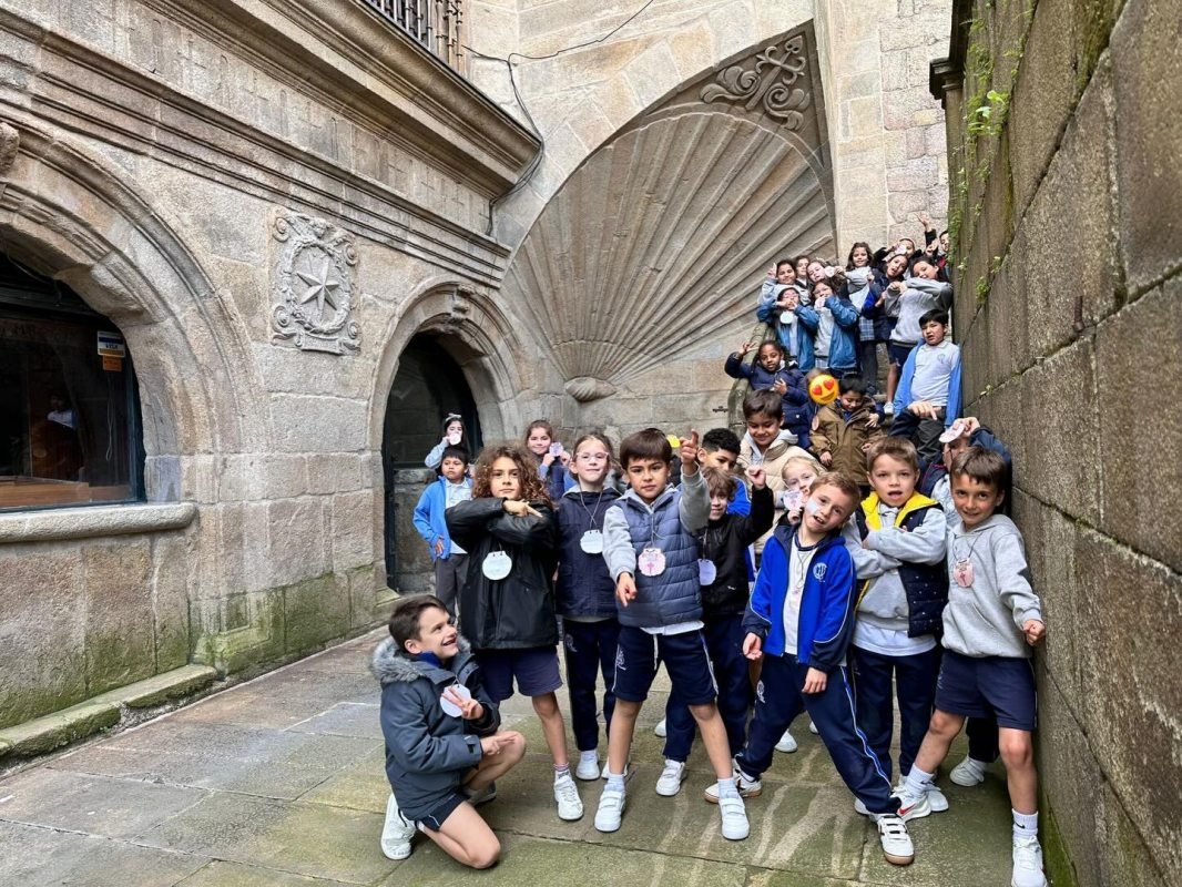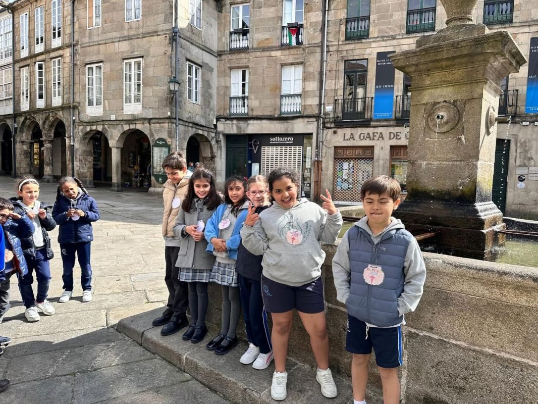 Esta tarde, o alumnado de 2º de Primaria participou nun roteiro pola zona vella no que cada grupo foi explicando a parte que preparara previamente. Ao longo do percorrido, fixeron paradas no Arco de Mazarelos, na praza das Praterías, na Berenguela e noutros espazos emblemáticos, compartindo cos seus compañeiros e compañeiras a información traballada.