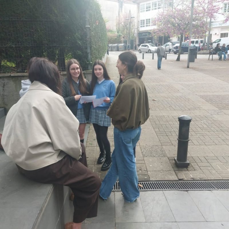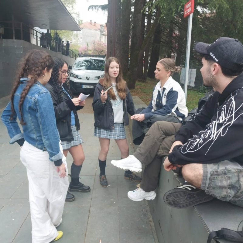 Os alumnos de 3 ESO da optativa de Oratoria están a traballar a entrevista na aula. Unha vez traballada a teoría saímos á rúa a facer o traballo de campo. Achegámonos ata a biblioteca Concepción Arenal do campus da USC para entrevistar aos universitarios. A experiencia foi moi produtiva e moi intetesante!